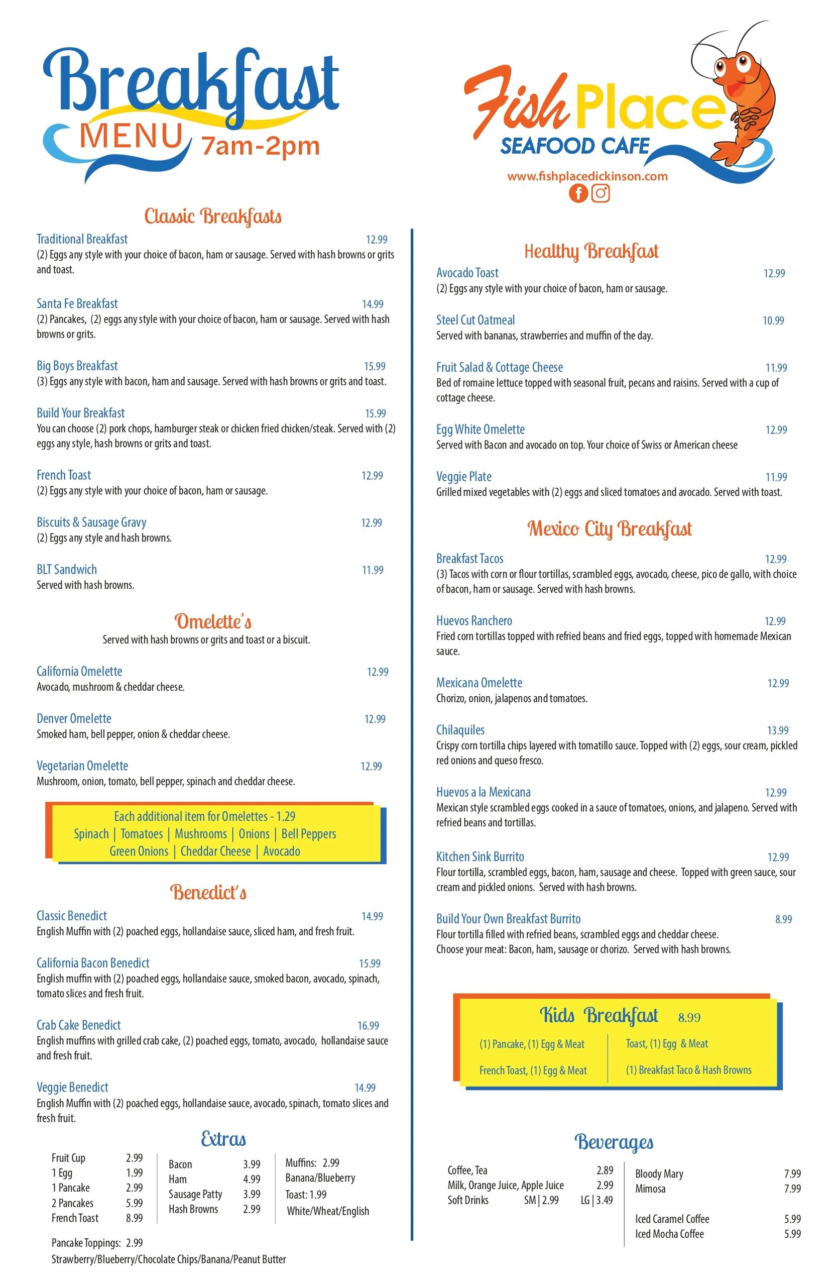Breakfast Menu Served Monday to Sunday 7 AM -2 PM